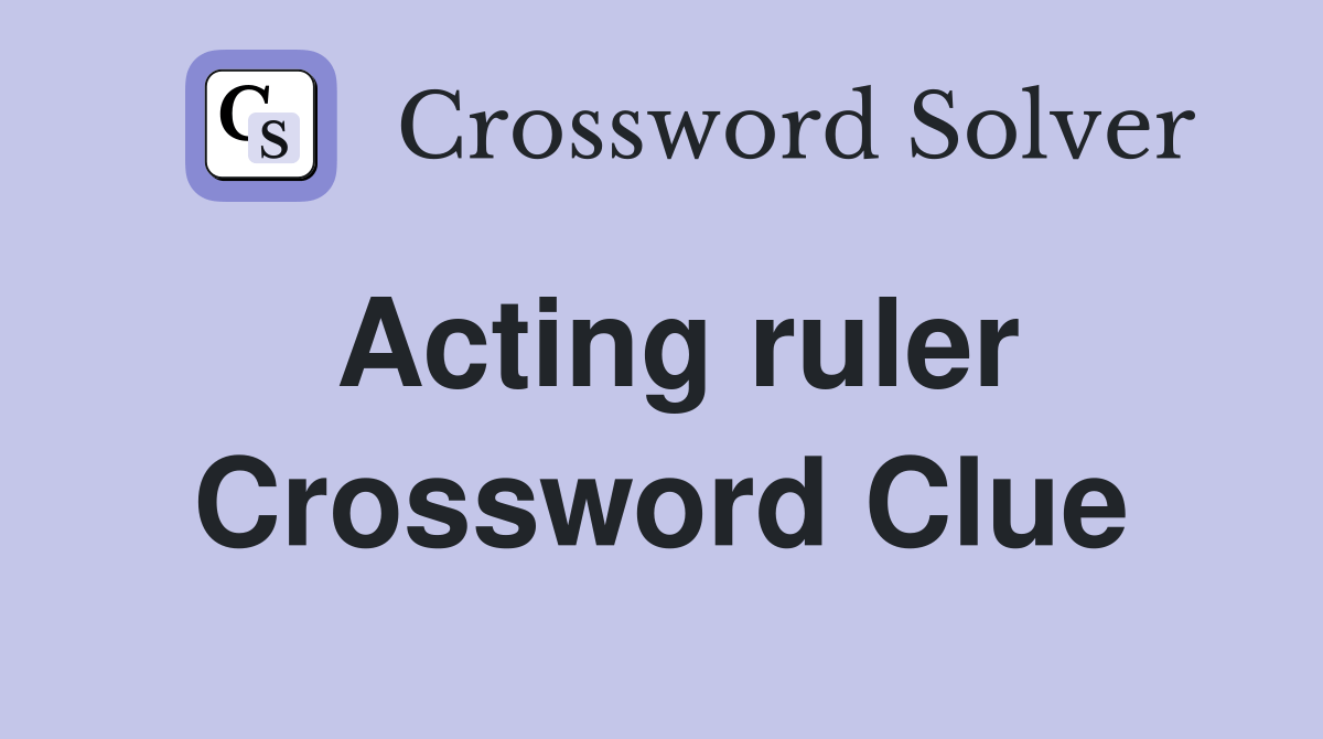 Web Here Are All The Possible Answers For Acting Ruler Crossword Clue Which Contains 6 Letters.