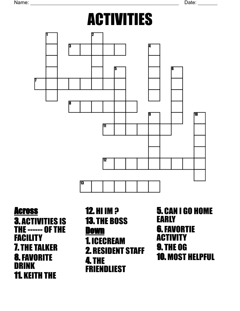 ACTIVITIES Crossword WordMint