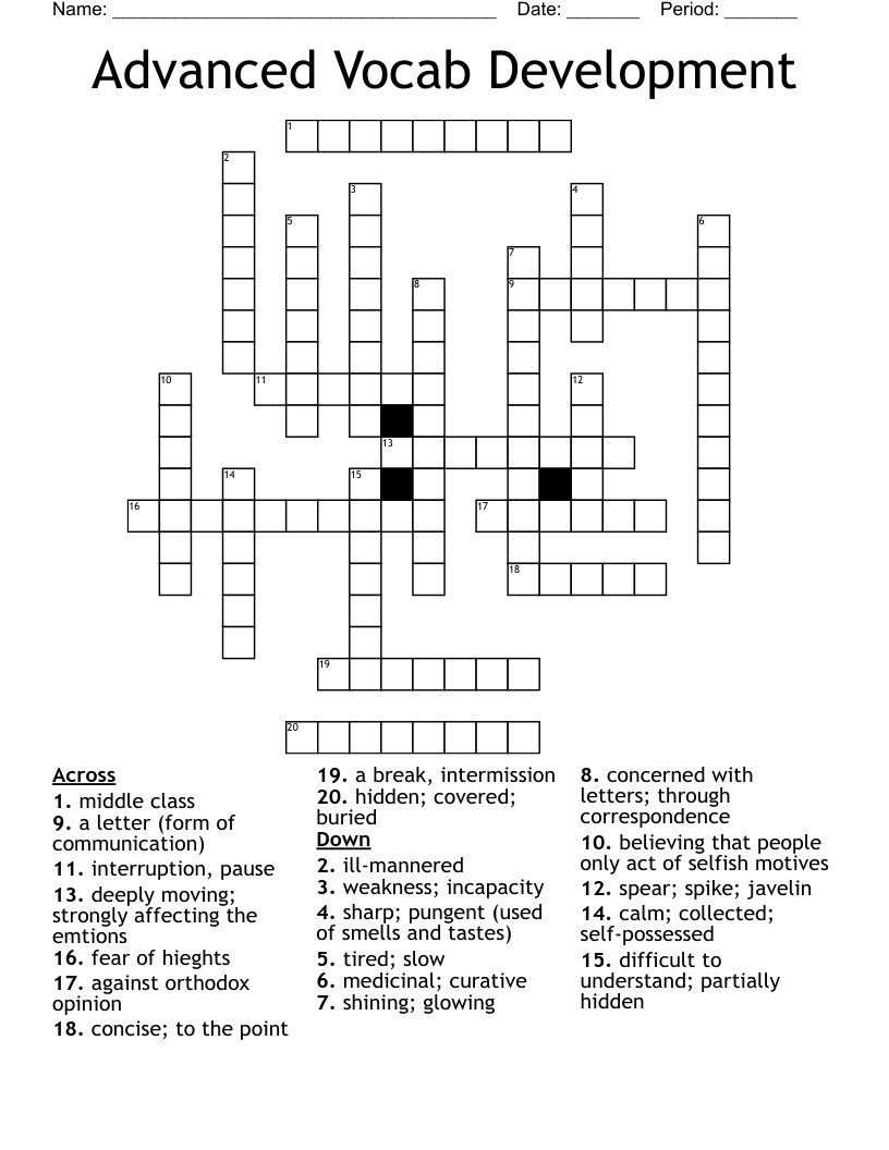 Advanced Vocab Development Crossword WordMint