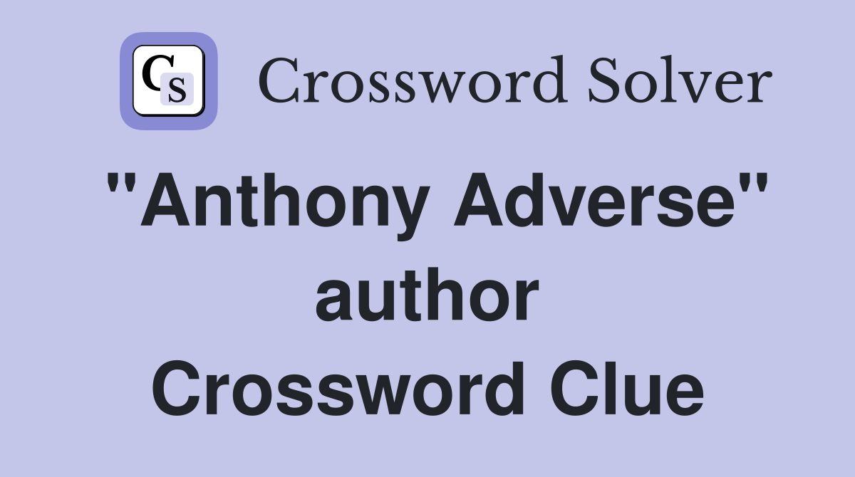 "Anthony Adverse" author Crossword Clue Answers Crossword Solver