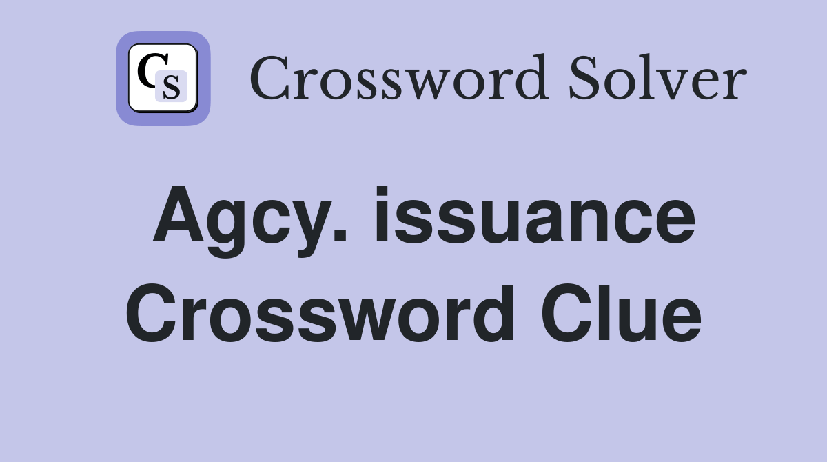 Agcy. issuance Crossword Clue Answers Crossword Solver