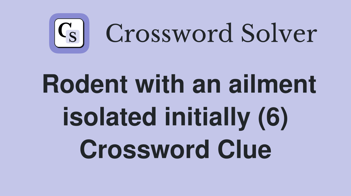 Rodent with an ailment isolated initially (6) Crossword Clue Answers Crossword Solver