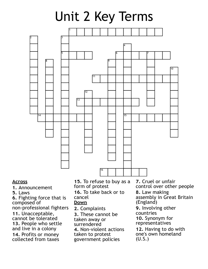 Unit 2 Key Terms Crossword WordMint