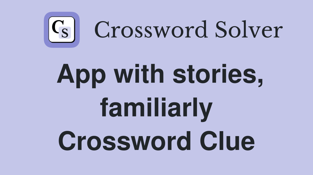 App with stories, familiarly Crossword Clue Answers Crossword Solver