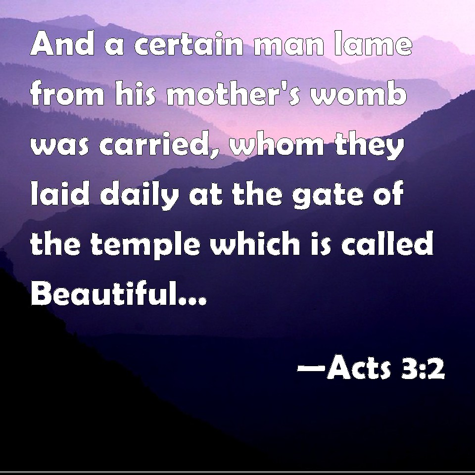 Acts 32 And a certain man lame from his mother's womb was carried, whom they laid daily at the