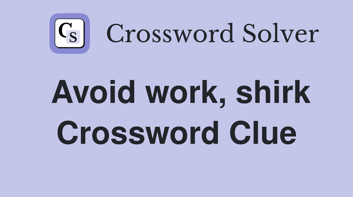 Avoid work, shirk Crossword Clue Answers Crossword Solver