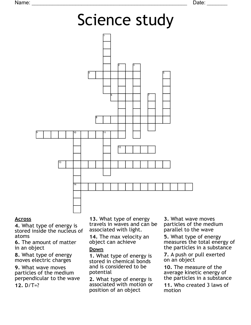 Science study Crossword WordMint