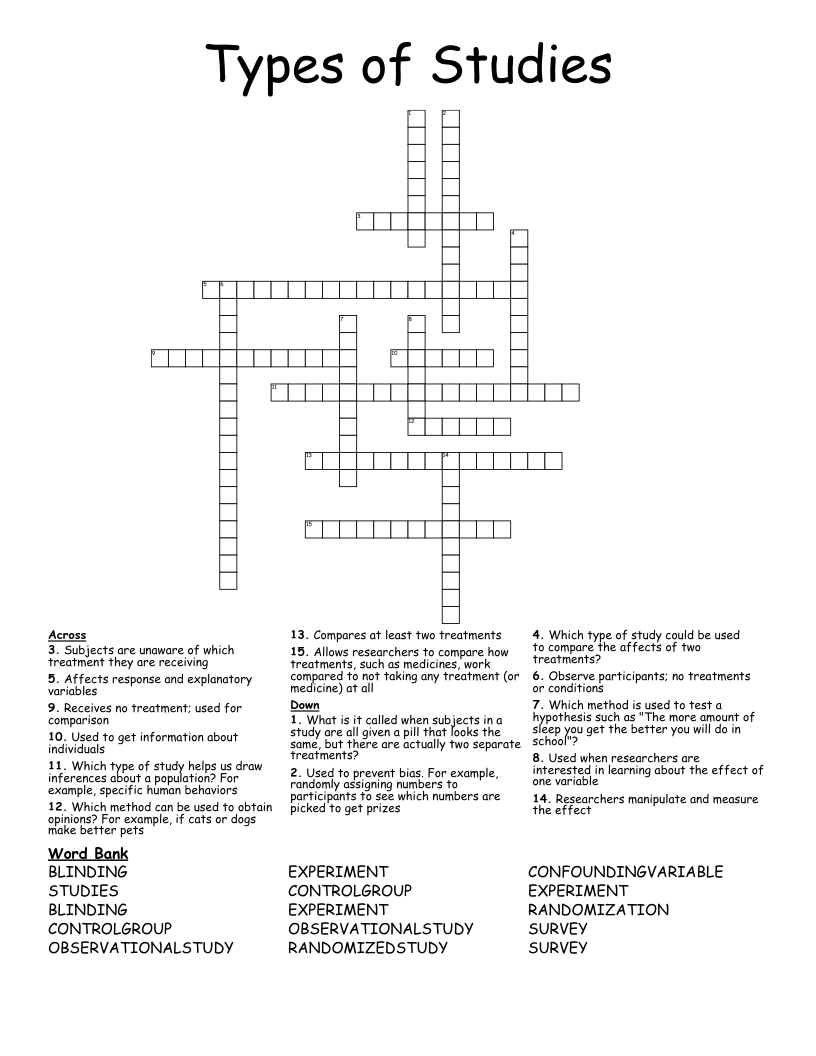 Types of Studies Crossword WordMint