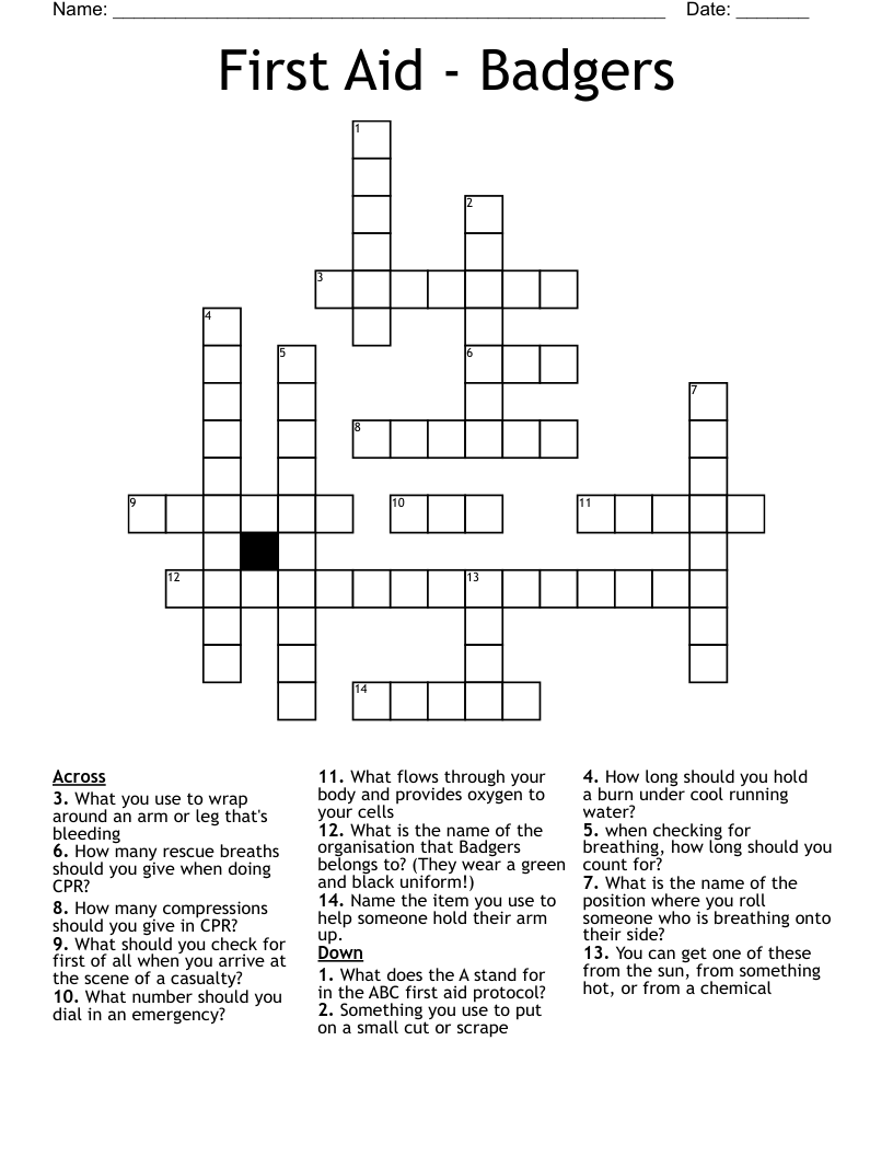 First Aid Badgers Crossword WordMint