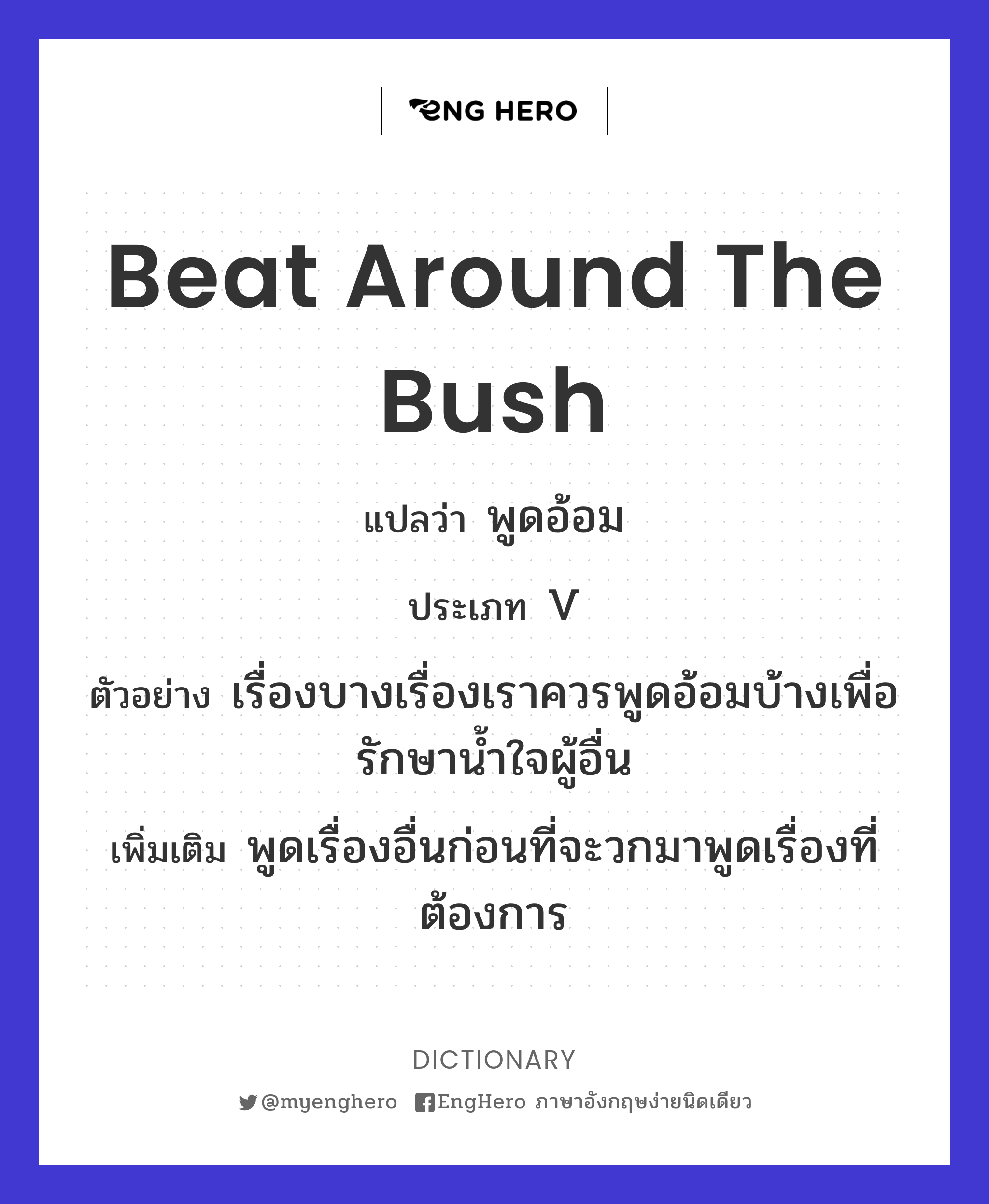 Beat Around The Bush แปลว่า พูดอ้อม Eng Hero เรียนภาษาอังกฤษ ออนไลน์ ฟรี