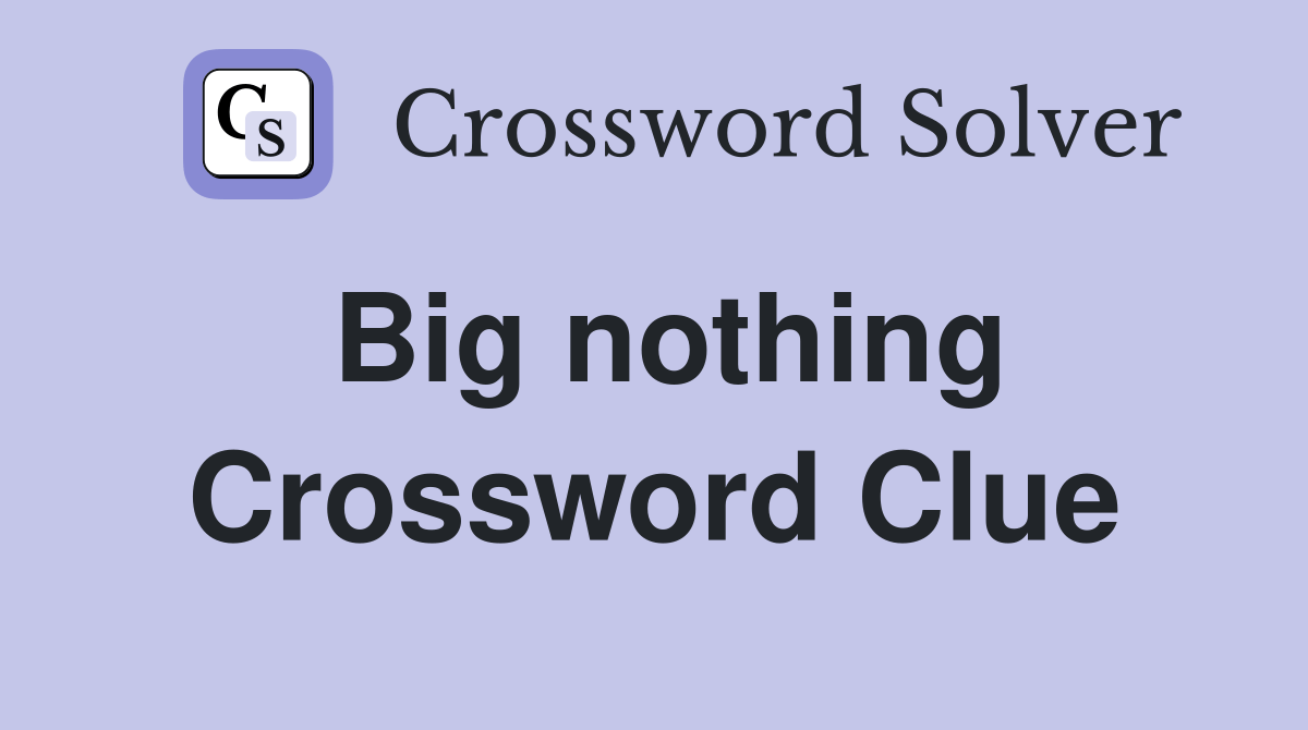 Web the crossword solver found 30 answers to big nothing, 4 letters crossword clue. Web the term 'big nothing' is a phrase used to describe a situation or event that has no significance or importance. The crossword solver finds answers to classic. There are related clues (shown below). Here is the answer for the crossword clue big nothing last seen.