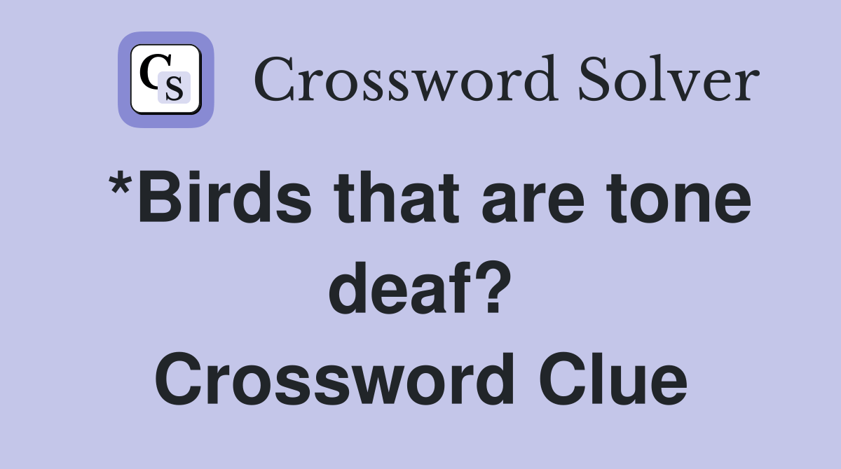 *Birds that are tone deaf? Crossword Clue Answers Crossword Solver