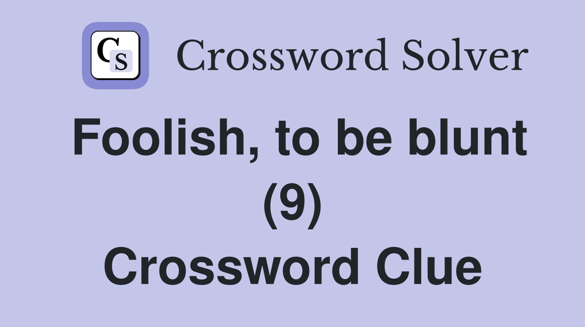 Foolish, to be blunt (9) Crossword Clue Answers Crossword Solver