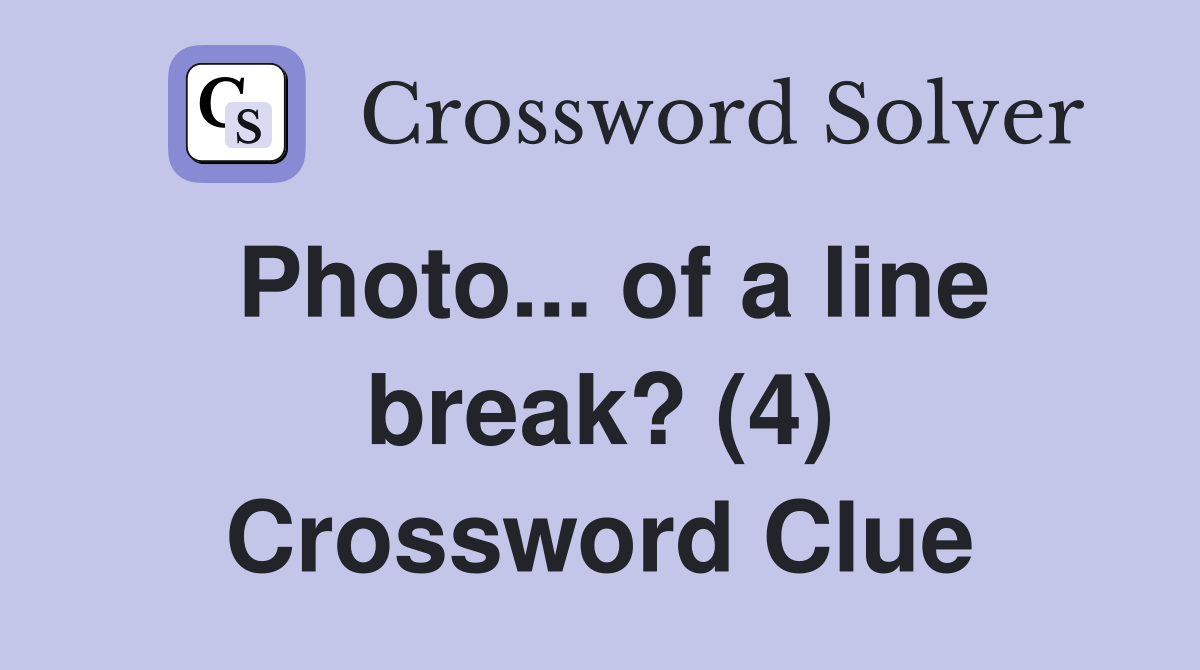 Photo... of a line break? (4) Crossword Clue Answers Crossword Solver