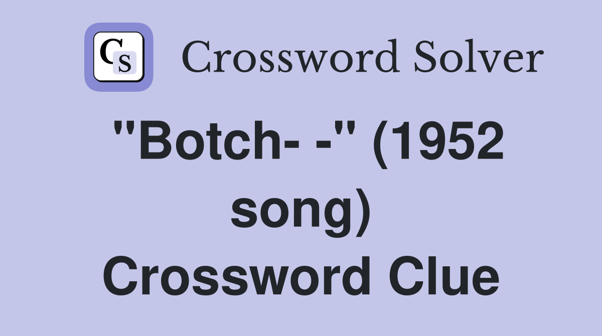 "Botch " (1952 song) Crossword Clue Answers Crossword Solver