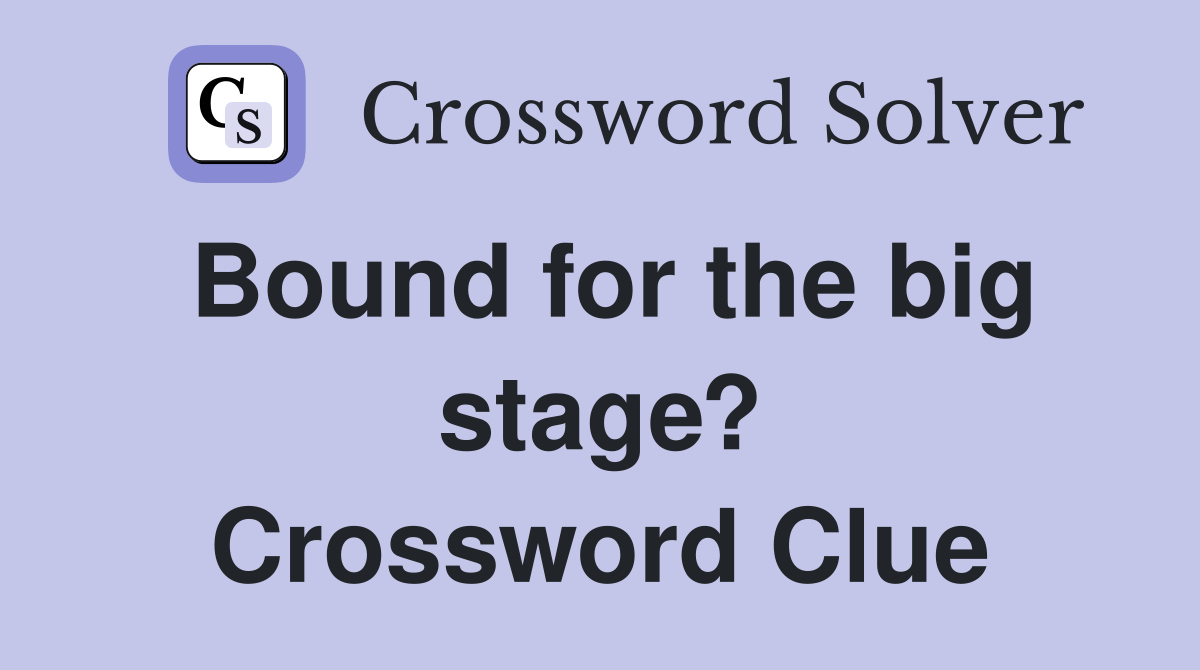 Bound for the big stage? Crossword Clue Answers Crossword Solver