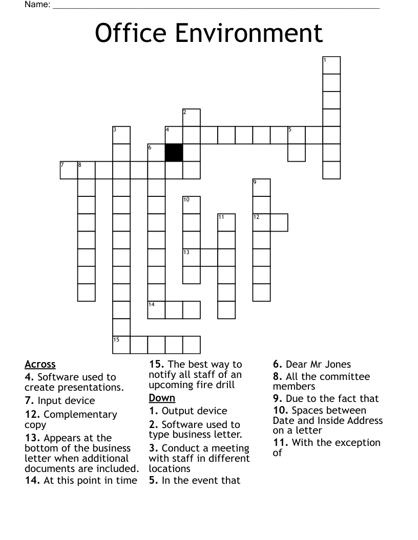 Office Environment Crossword WordMint