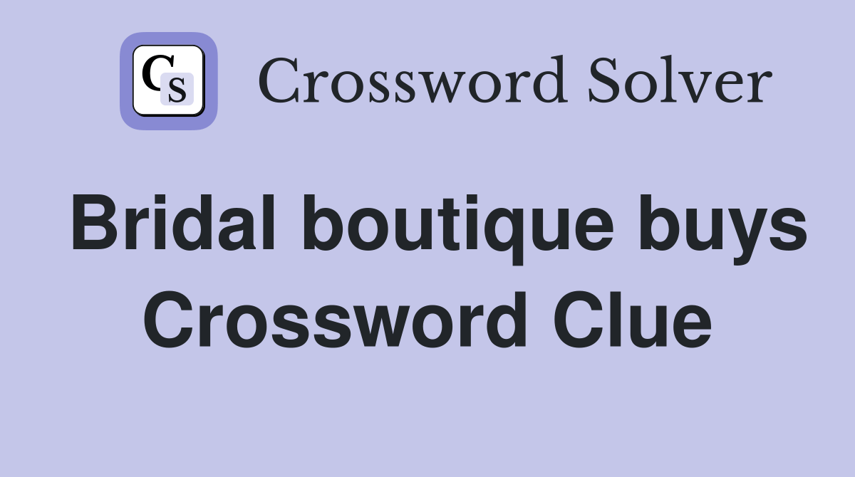 Bridal boutique buys Crossword Clue Answers Crossword Solver
