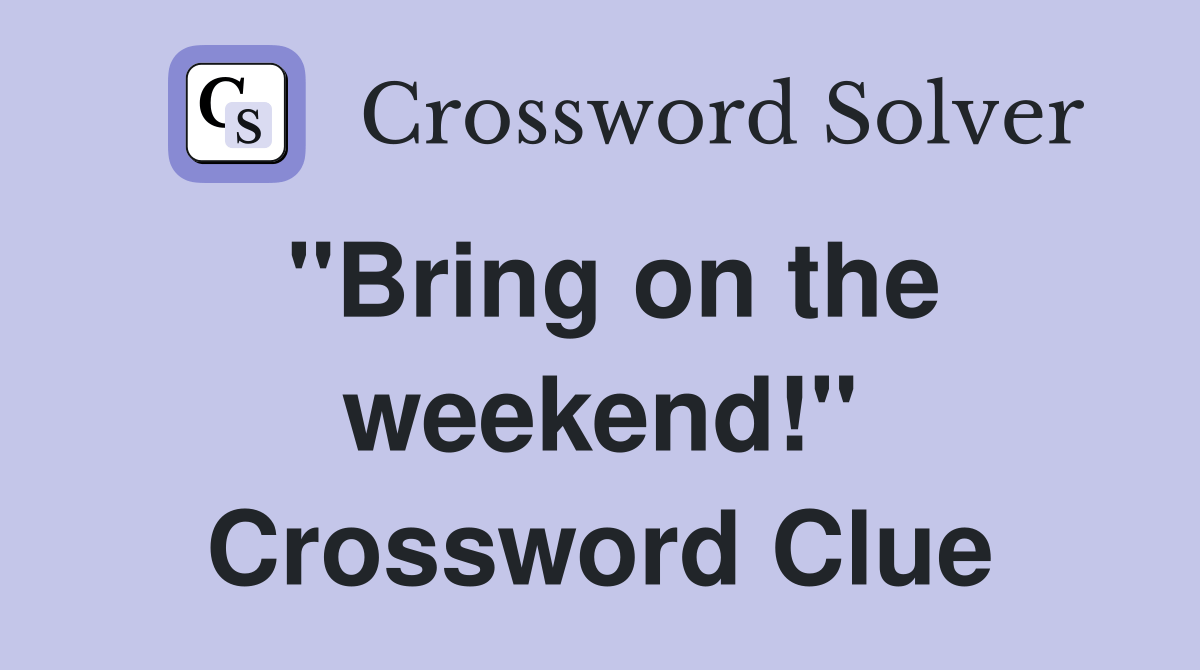 "Bring on the weekend!" Crossword Clue Answers Crossword Solver