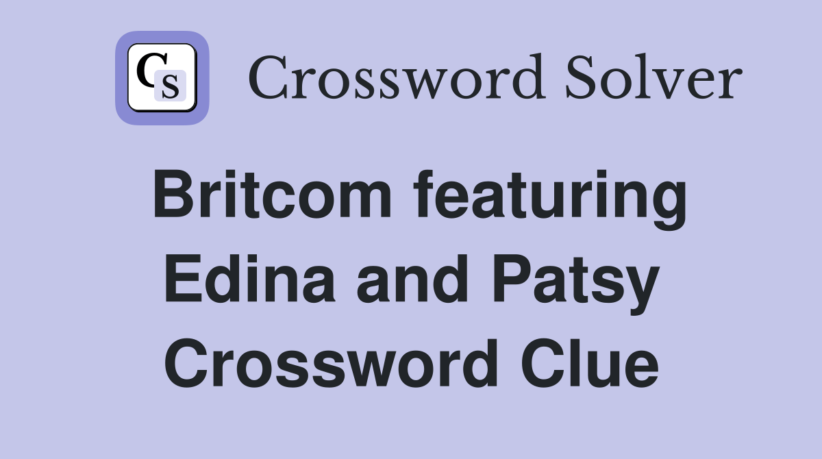 The top solutions are determined by popularity, ratings and frequency of. There are related clues (shown below). Web we found 40 solutions for britcom with edina and patsy. Web britcom with edina and patsy is a crossword puzzle clue that we have spotted 1 time.