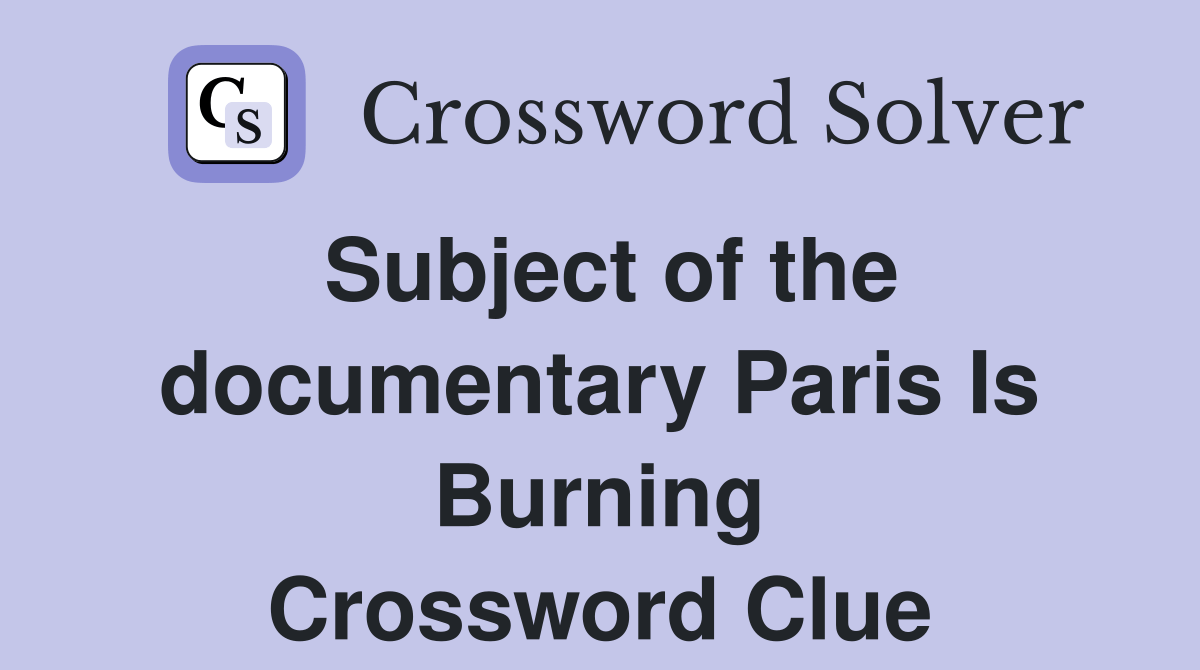 Subject of the documentary Paris Is Burning Crossword Clue Answers Crossword Solver