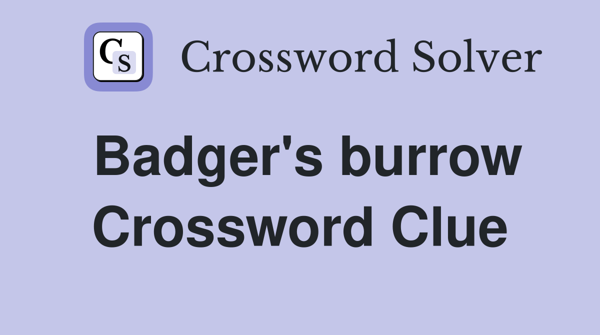Badger's burrow Crossword Clue Answers Crossword Solver