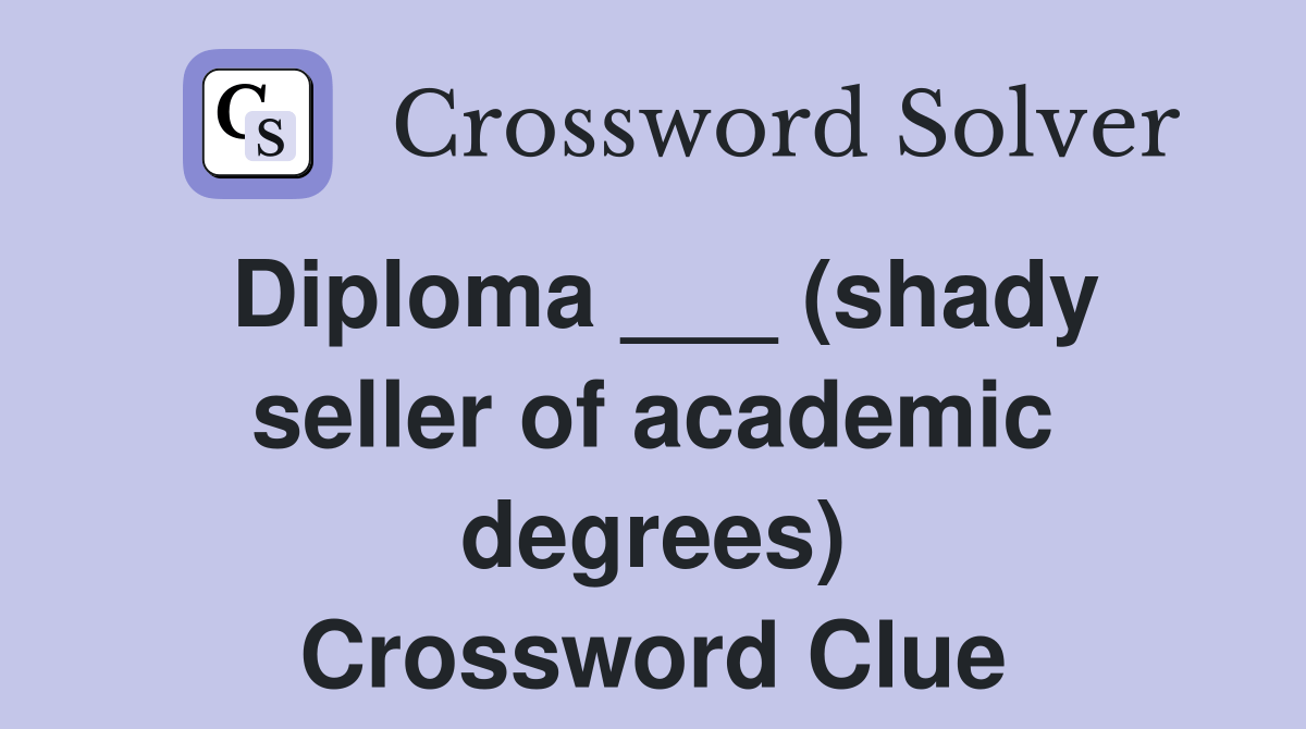 Diploma ___ (shady seller of academic degrees) Crossword Clue Answers Crossword Solver