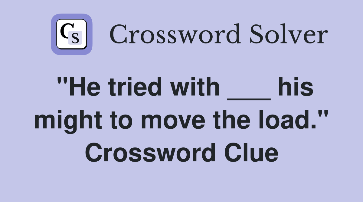 "He tried with ___ his might to move the load." Crossword Clue Answers Crossword Solver