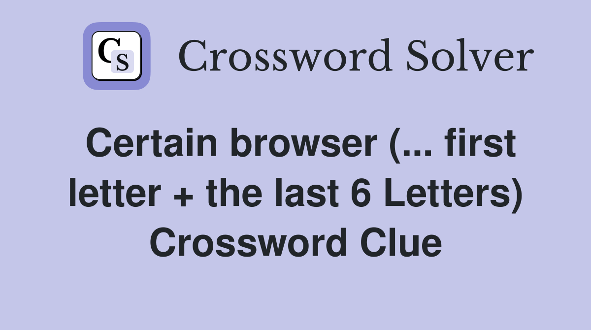 Certain browser (... first letter + the last 6 Letters) Crossword Clue Answers Crossword Solver
