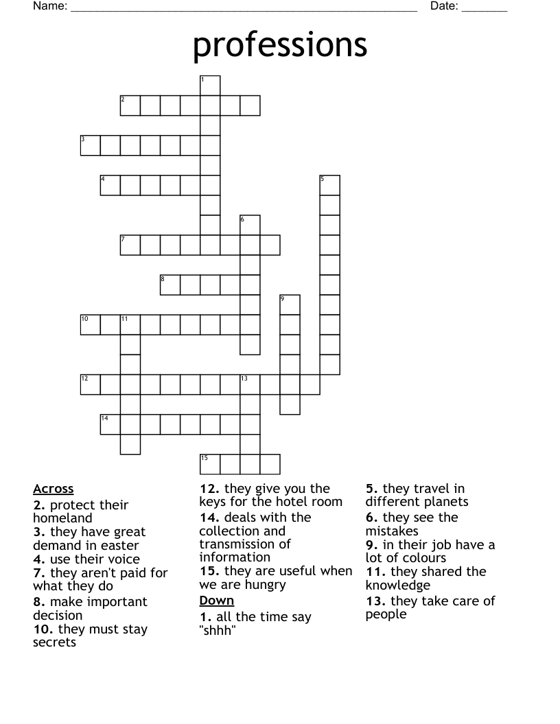 CrosswordProfession ESL worksheet by SulaUlhoa
