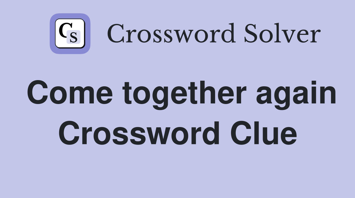 We have 26 answers for this clue. Web here is the answer for the crossword clue come again (8) last seen in puzzler puzzle.