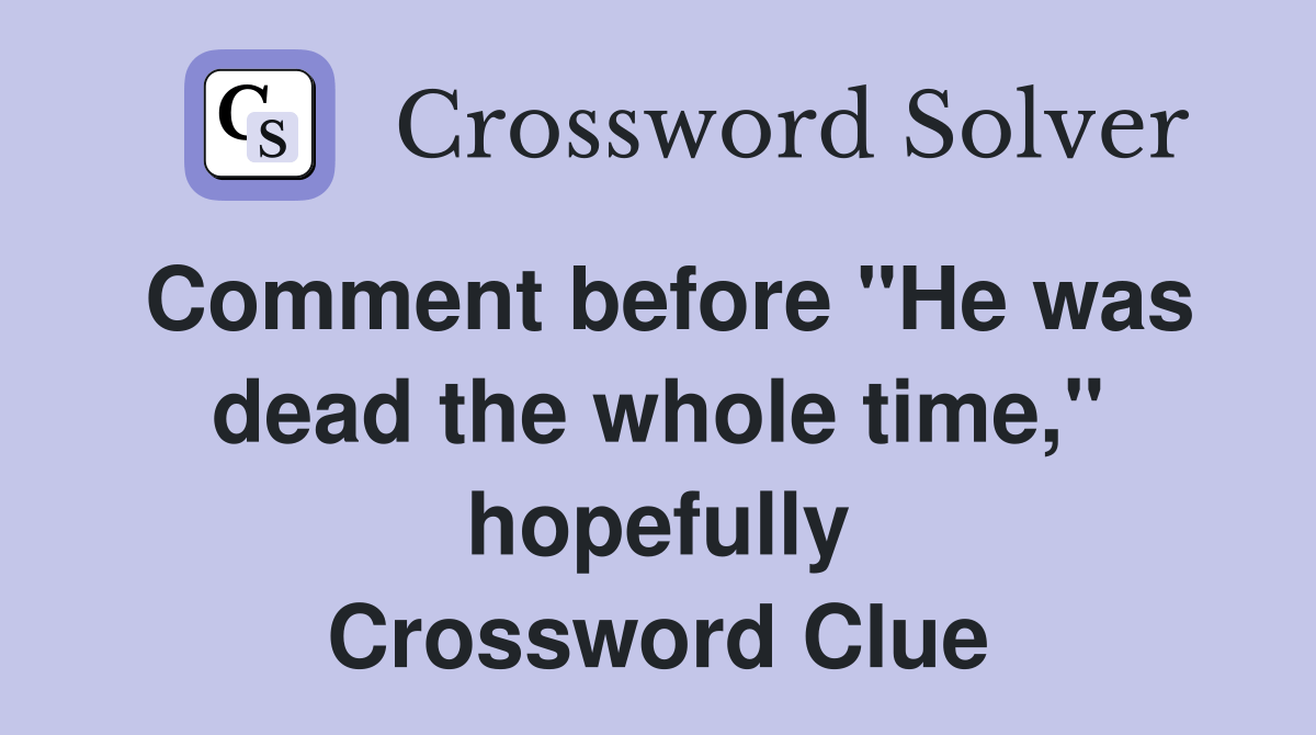Comment before "He was dead the whole time," hopefully Crossword Clue Answers Crossword Solver