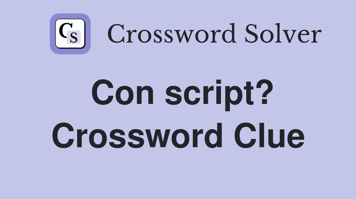 Web here is the answer for the crossword clue con script? Did you find the solution of con script? We have found 34 possible. We will try to find the right answer to this particular. (thesaurus) this is the entire clue.