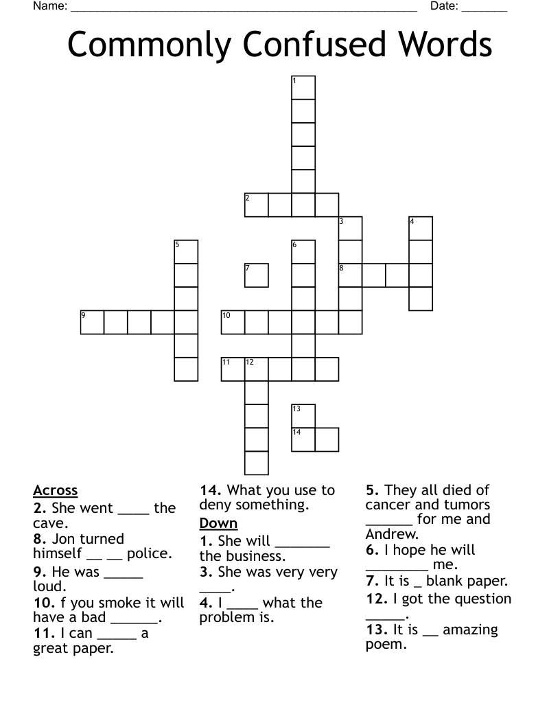 Commonly Confused Words Project Crossword Puzzle Word vrogue.co