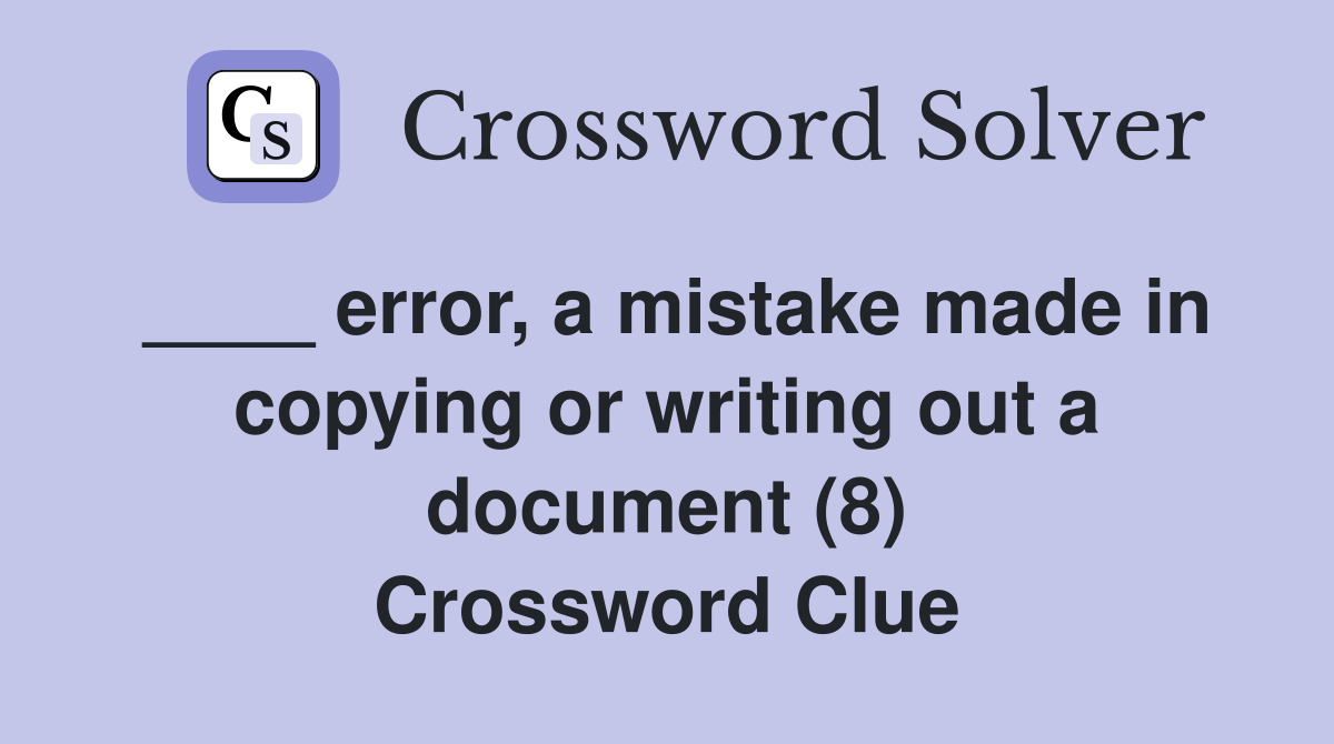 error, a mistake made in copying or writing out a document (8) Crossword Clue Answers