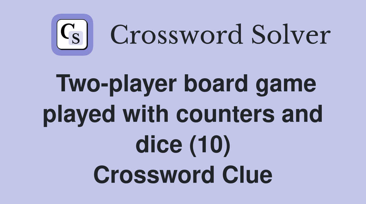 Twoplayer board game played with counters and dice (10) Crossword Clue Answers Crossword Solver