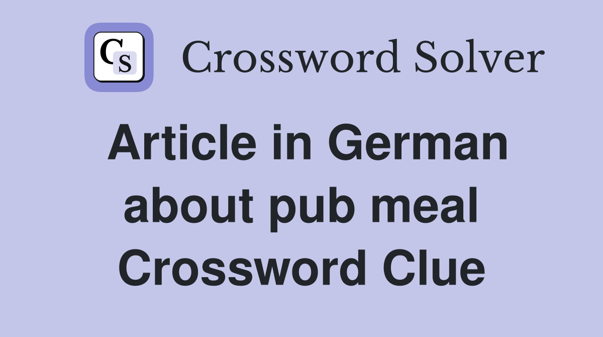 Article in German about pub meal Crossword Clue Answers Crossword Solver