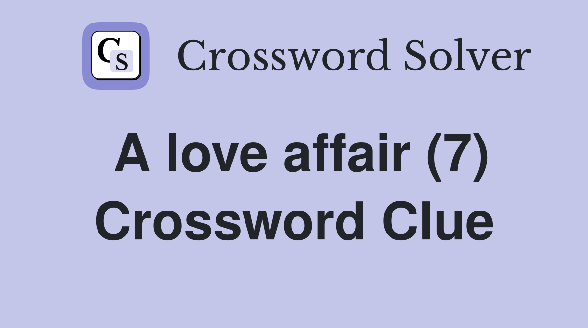 A love affair (7) Crossword Clue Answers Crossword Solver