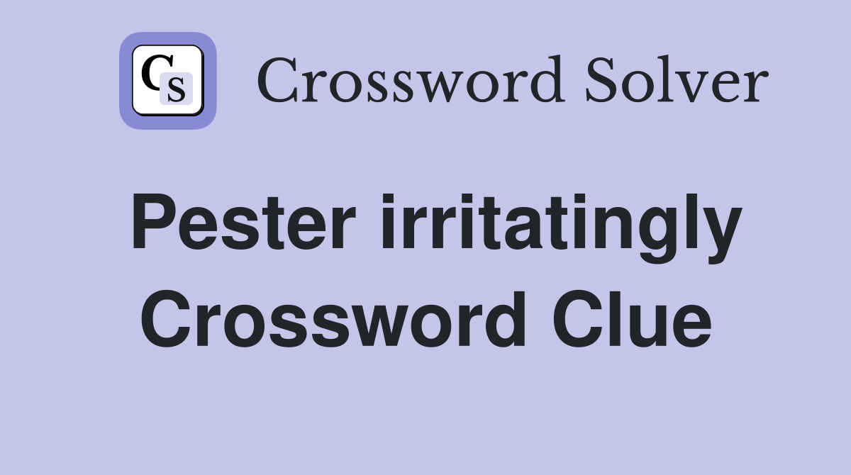 Web we found 18 answers for the crossword clue pester. The crossword solver finds answers to classic. Web the crossword solver found 60 answers to pester, 3 letters crossword clue. We will try to find the right answer to this particular crossword clue. Web here is the answer for the crossword clue pester;