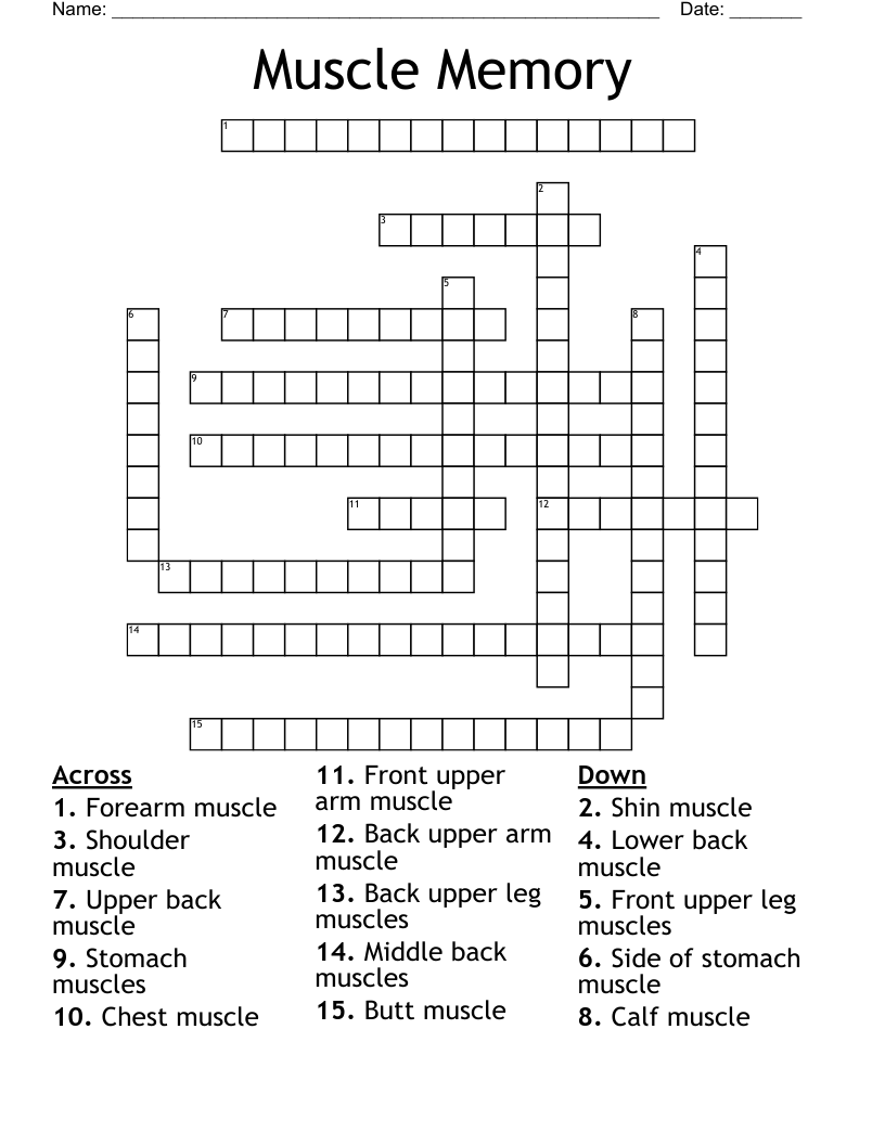 Muscular System Crossword Puzzle Set Amped Up Learning
