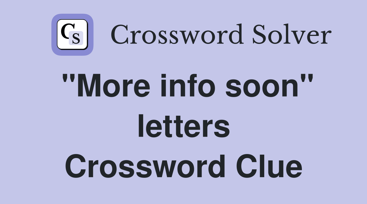 "More info soon" letters Crossword Clue Answers Crossword Solver