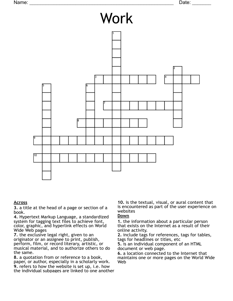 work Crossword WordMint