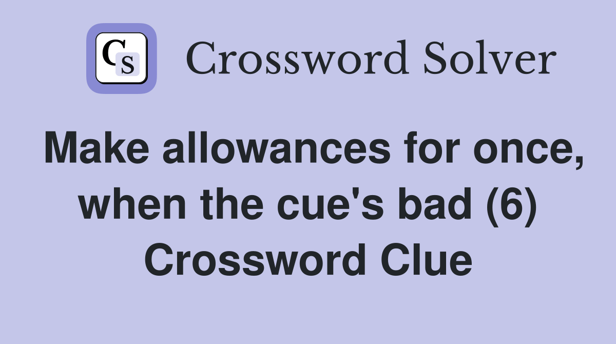 Make allowances for once, when the cue's bad (6) Crossword Clue Answers Crossword Solver