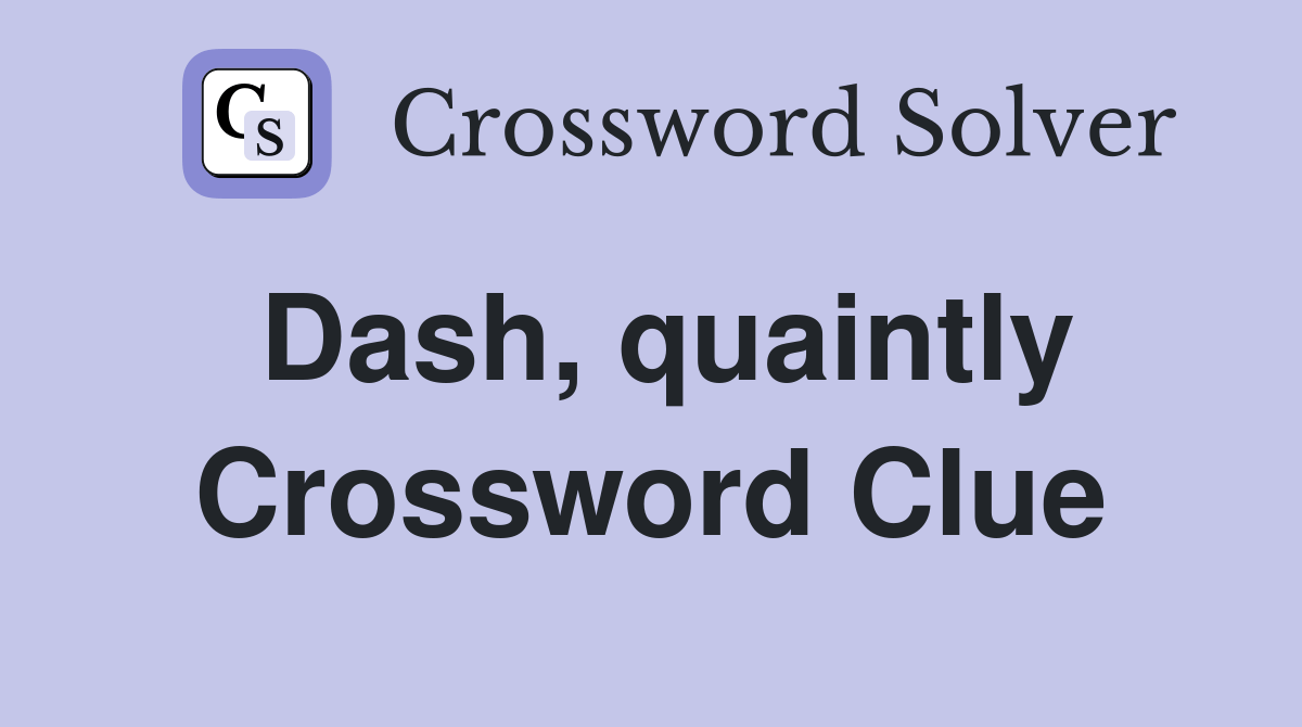 Web on this page you will find the dash quaintly crossword puzzle clue answers and solutions. Web here is the answer for the crossword clue dash, quaintly last seen in la times daily puzzle. Web i've seen this clue in the la times. There are related clues (shown below). Web dash, quaintly is a crossword puzzle clue that we have.