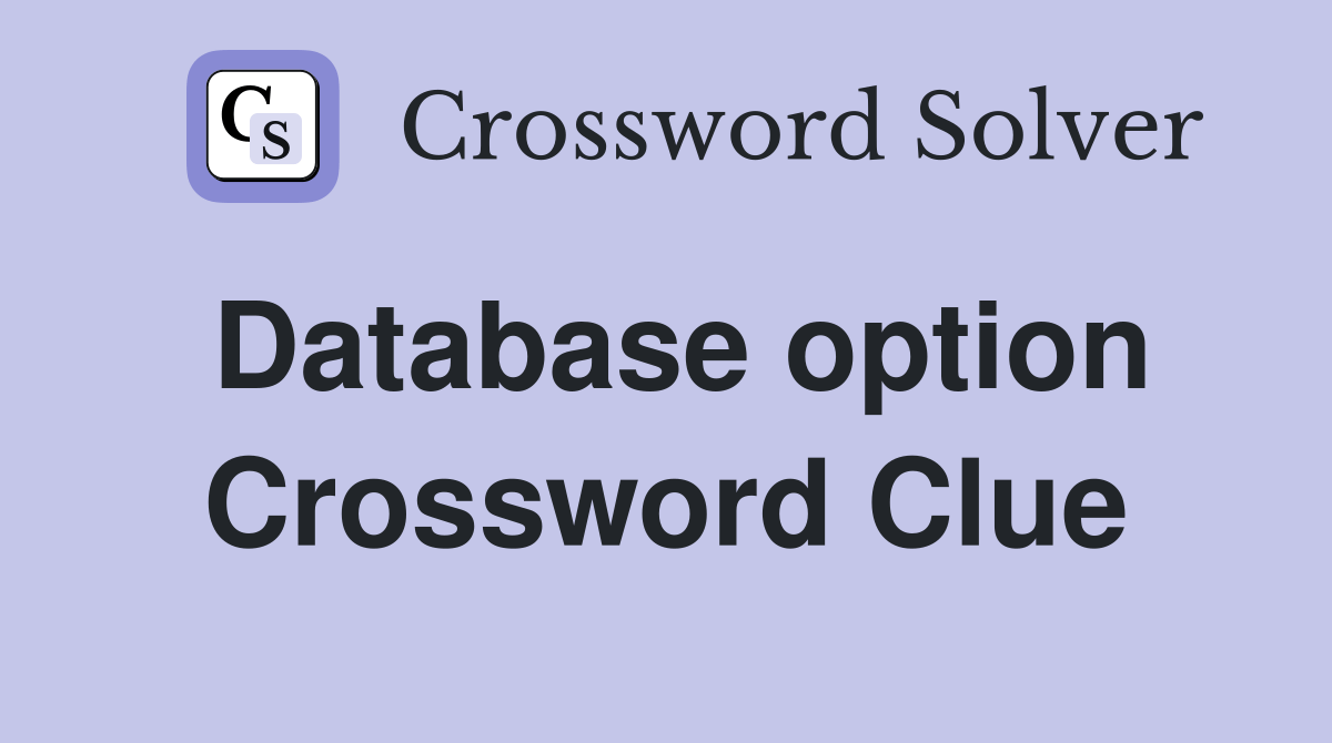 Web the crossword solver found 30 answers to database option, 4 letters crossword clue. Web database option is a crossword puzzle clue that we have spotted 10 times. Solve your database option crossword puzzle. We have found 40 possible.