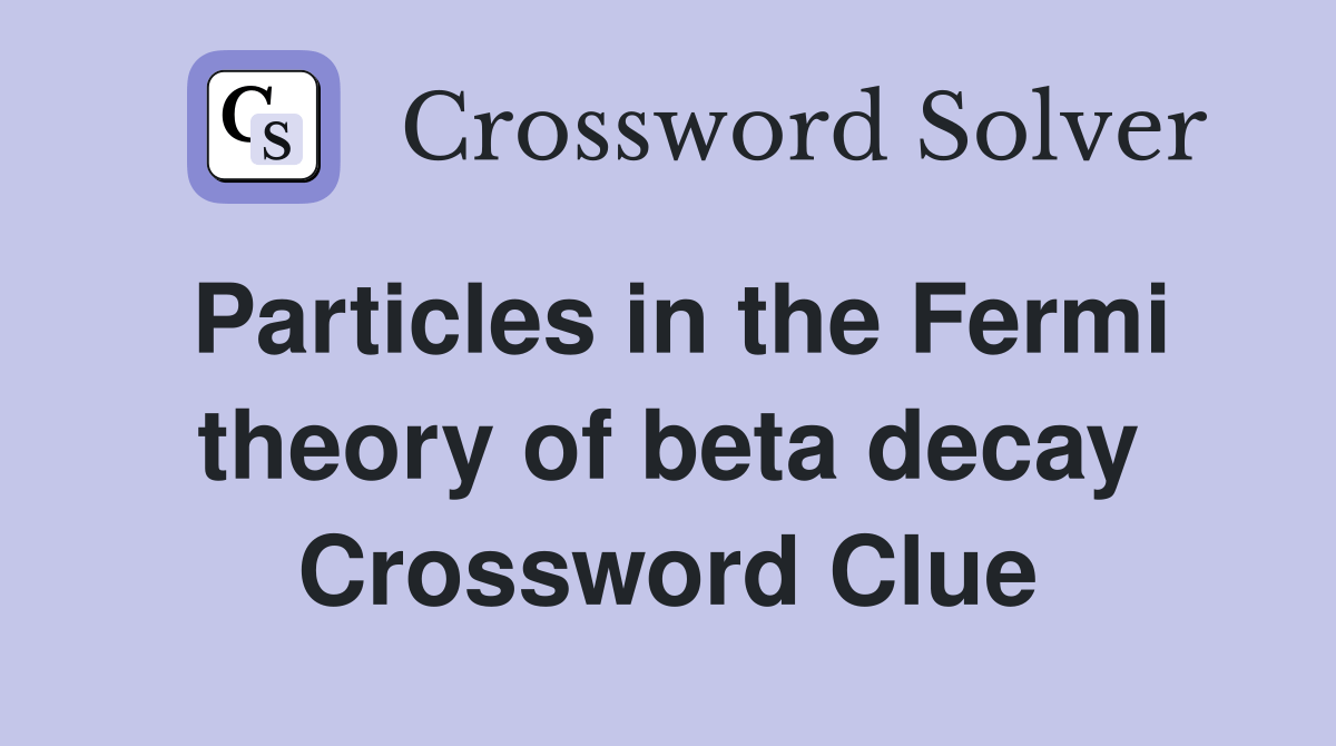 Particles in the Fermi theory of beta decay Crossword Clue Answers Crossword Solver