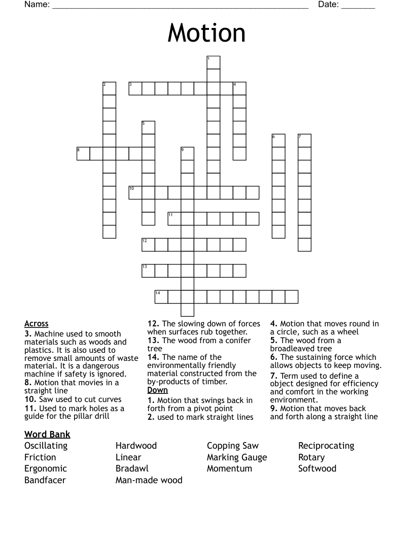 MOTION CROSSWORD PUZZLE WordMint
