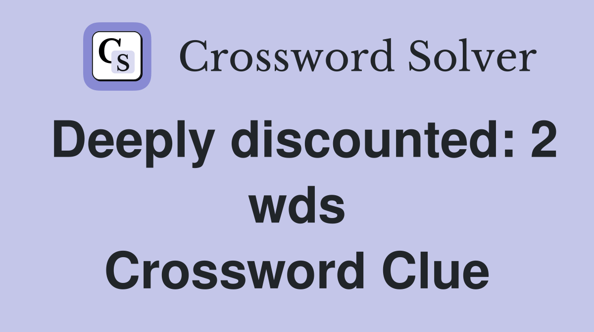 Deeply discounted 2 wds. Crossword Clue Answers Crossword Solver