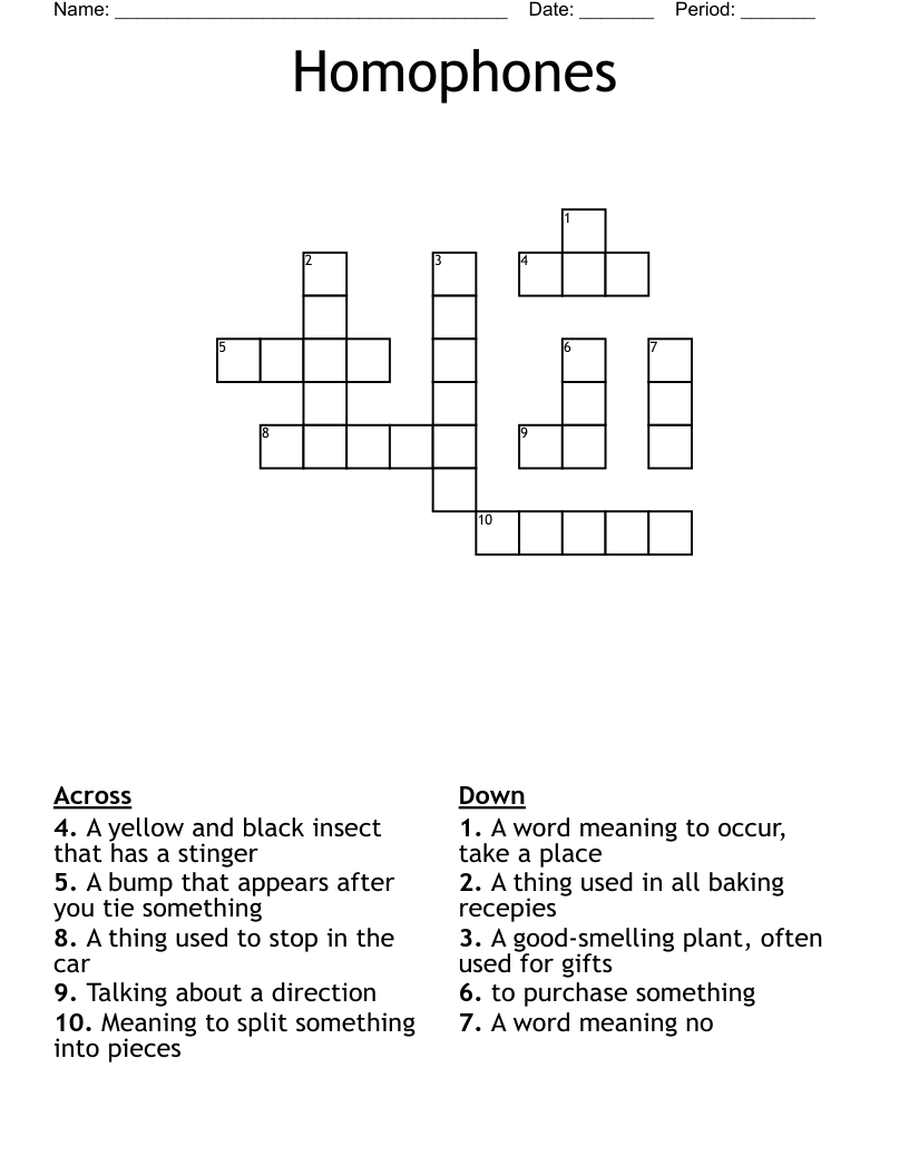 Homophones Crossword Puzzle Printable