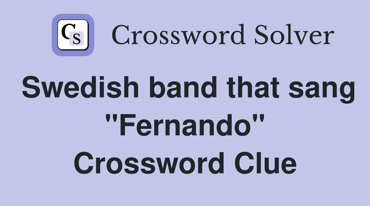 Swedish band that sang "Fernando" Crossword Clue Answers Crossword Solver